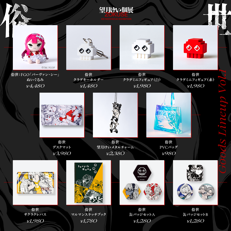 มีกำหนดการขายสินค้าการเปลี่ยนแปลงที่มั่งคั้งที่ได้สนุกกับภาพประกอบของคุณเคะอิ โมะชิซุคิเช่นภาพต้นฉบับสิ่งจำลองต้นฉบับและปั๊มน้ำมันอะคริลิกท่อนบล๊อกอะคริลิกเข็มกระป๋องสติกเกอร์เสน่ห์โลหะเสื้อคลุมที่มีหมวกคลุมศีรษะไว้กันลมและหิมะเสื้อที่ถอดออกทางศรีษะและสินค้าเสื้อผ้าเช่นเสื้อยืดเป็นต้นเป็นการจัดการแสดงงานศิลปะของศิลปินเดี่ยวนี้สินค้าที่ระลึกด้วย นอกจากนั้นวาดภาพ และขายตุ๊กตาใส่นุ่นด้านใน pastel crayon ( Sakura Color Products Corp. ) ของหีบห่อต้นฉบับด้วยภาพประกอบและ Fate/Grand Order " ทะเลบาร์รถแวน" ที่วาดภาพ และสะท้อนภาพของภาพประกอบด้วย